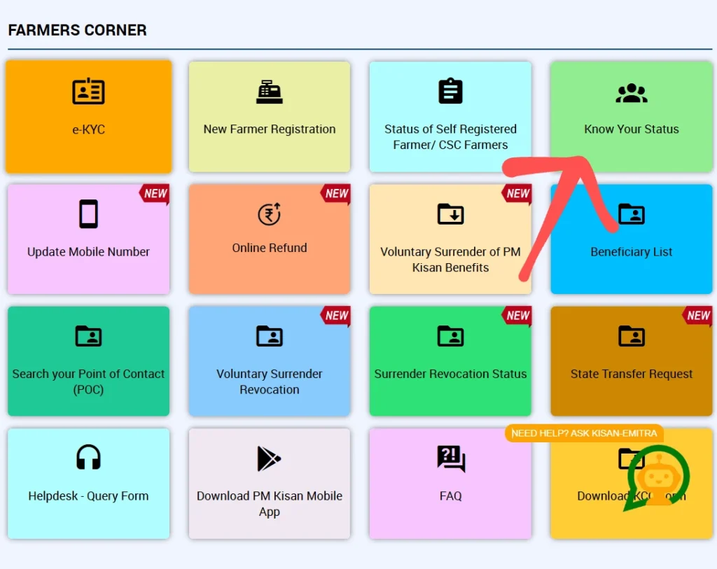pmkisan.gov.in) पर जाएं। - Farmers Corner में “Beneficiary Status” select करें।